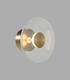 Dome Air Wall Light features a borosilicate glass shade and a central brass accent. A refined brass rod intersects the shade, housing a radiant dimmable LED light source.